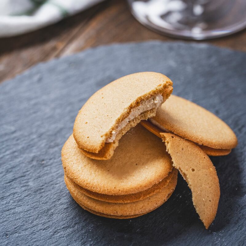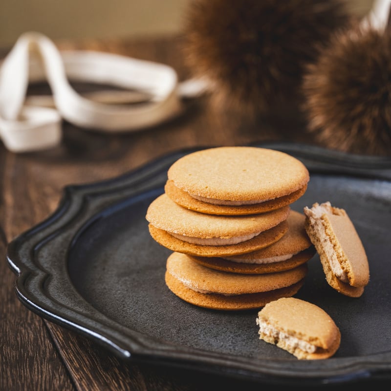 サクサクのラングドシャと栗クリームを、熟練の技でバランス良く組み合わせました。贅沢な食感が楽しめる逸品です。