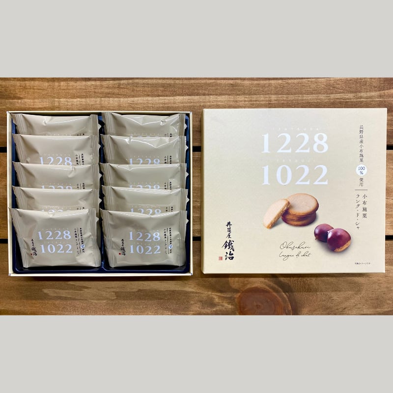 美しいパッケージに包まれた小布施栗ラングドシャは、贈り物やお茶うけにも大人気。大切な方への気持ちが伝わる、特別な一品です。