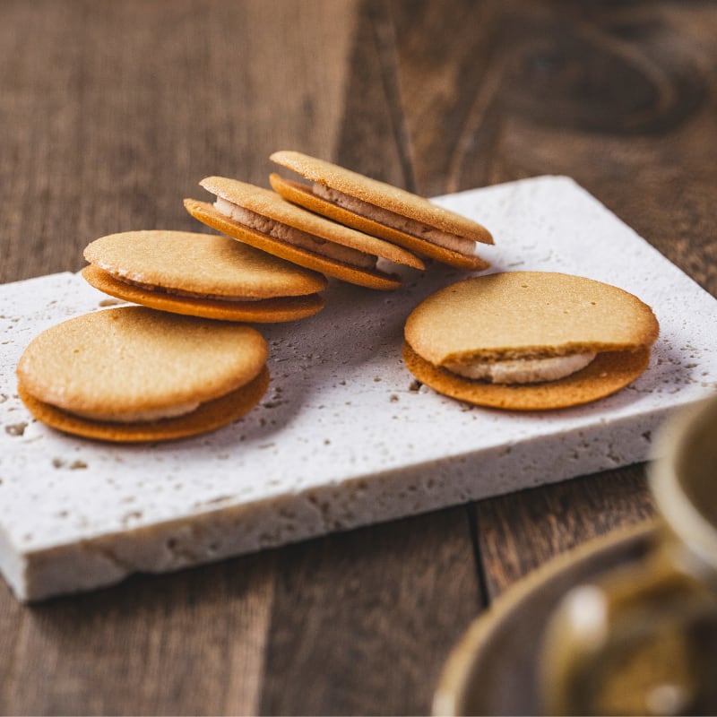 サクサクのラングドシャと栗クリームを、熟練の技でバランス良く組み合わせました。贅沢な食感が楽しめる逸品です。